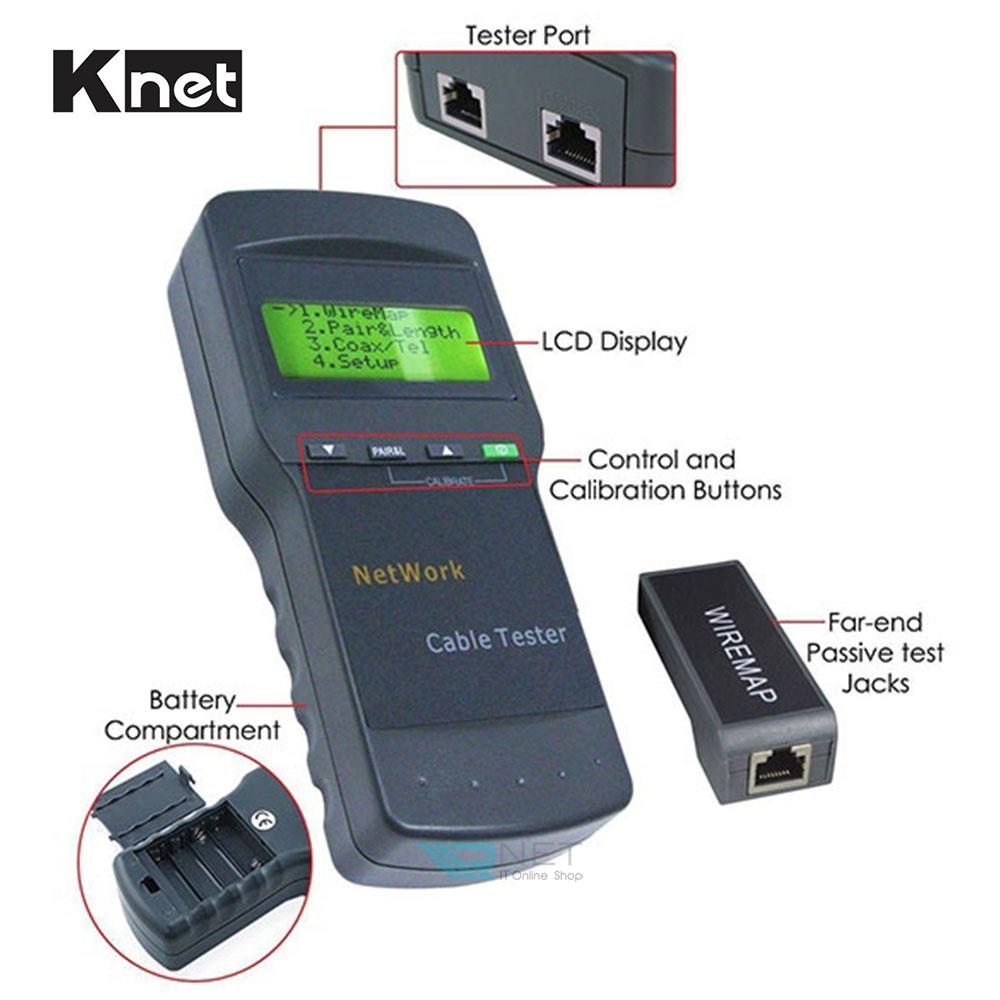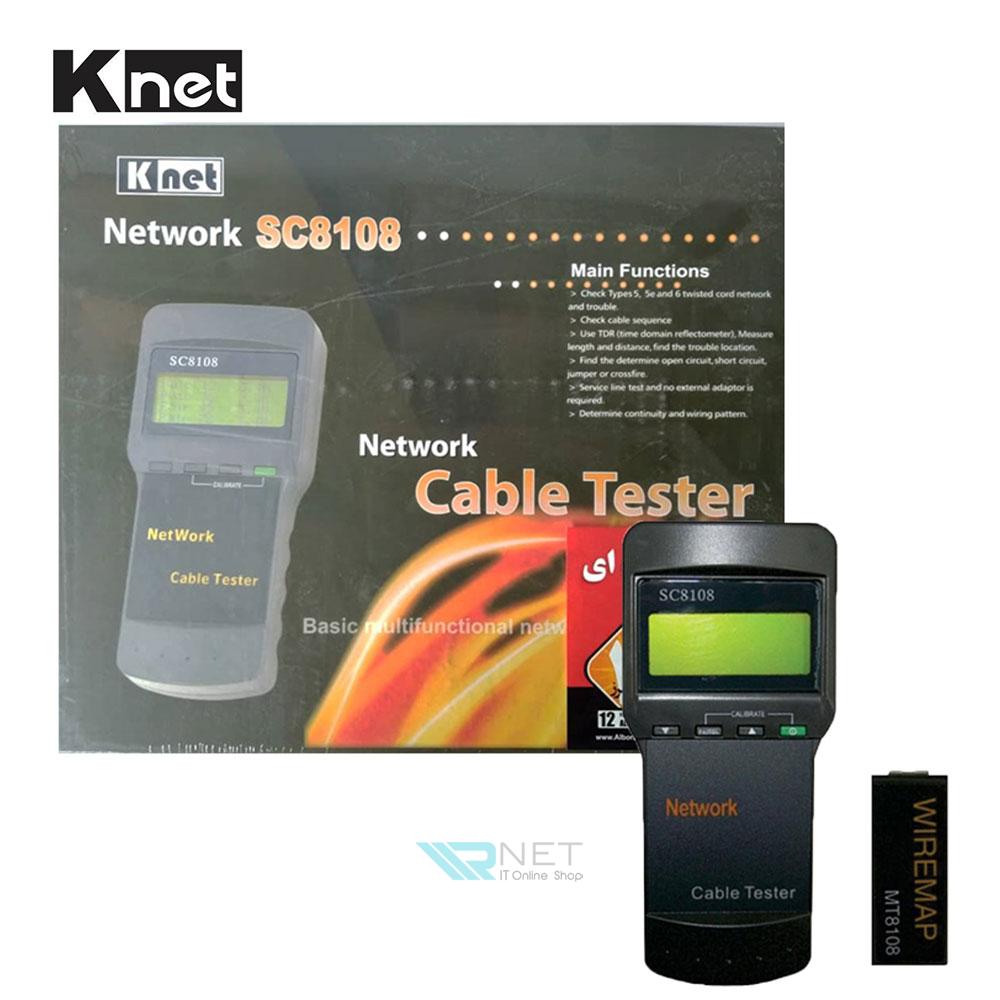تستر کابل شبکه کی نت مدل SC8108-3LW ، برای تست عملکرد درست کابلهای شبکه استفاده میشود. در بسیاری از مواقع پس از اینکه دو طرف کابل را سوکتزنی کردید، برای اینکه از کار خود مطمئن شوید، میتوانید از این دستگاه استفاده کنید. از این دستگاه میتوان برای نمایش متراژ و ایرادات کابل از قبیل اتصالی و قطعی به همراه مشخص کردن محل ایراد کابل و تست سلامت کانکشنها، تعیین محل خطا در سیمکشی یا اتصالات، بررسی خطای سیمکشی در کابل نظیر مدار باز، اتصال کوتاه و … است …