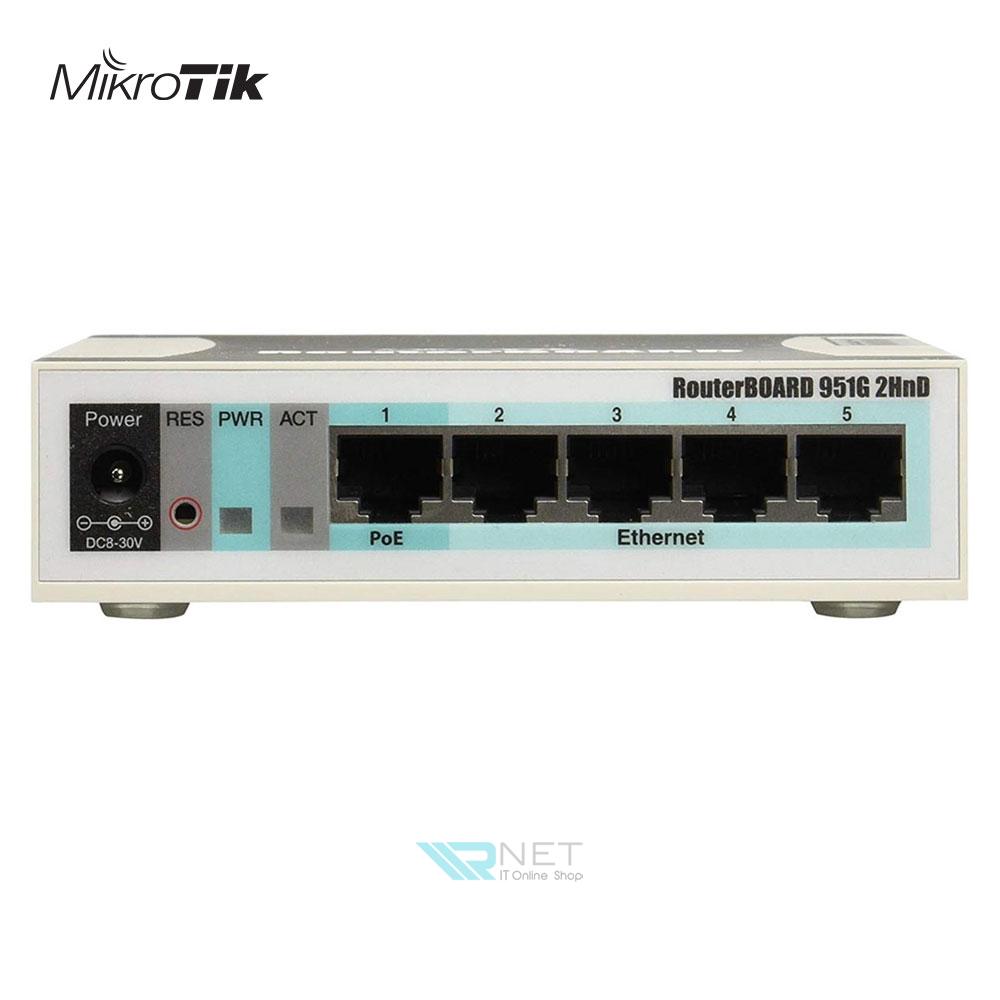 محصول RB951G-2HnD از تجهیزات میکروتیک یک دستگاه با ابعاد مناسب برای مراکز اداری و شرکت های کوچک است. که از نسل جدید پردازنده Atheros، با قدرت پردازش بیشتر طراحی شده و توانایی بکارگیری به عنوان یک Access Point را داراست. همچنین از نظر امکانات سخت افزاری شامل 5 پورت گیگا بیت اترنت ، پورت USB2.0 و کارت وایرلس داخلی با توان 1000MW که از استاندارد 802.11b/g/n پشتیبانی می کند، می باشد. در مقایسه با مدلهای قبلی مدل RB951G-2HnD دارای یک پردازنده قویتر با سرعت 600MHz، 128MB حافظه رم اما با همان امکانات است. به دلیل کوچکی ابعاد این روتر بسیار مناسب برای ادارات کوچک و خانگی بوده و قابل نصب بر روی دیوار می باشد. محتویات پکیج شامل روتربرد 951G-2HnD با بدنه پلاستیکی و آداپتور است.
