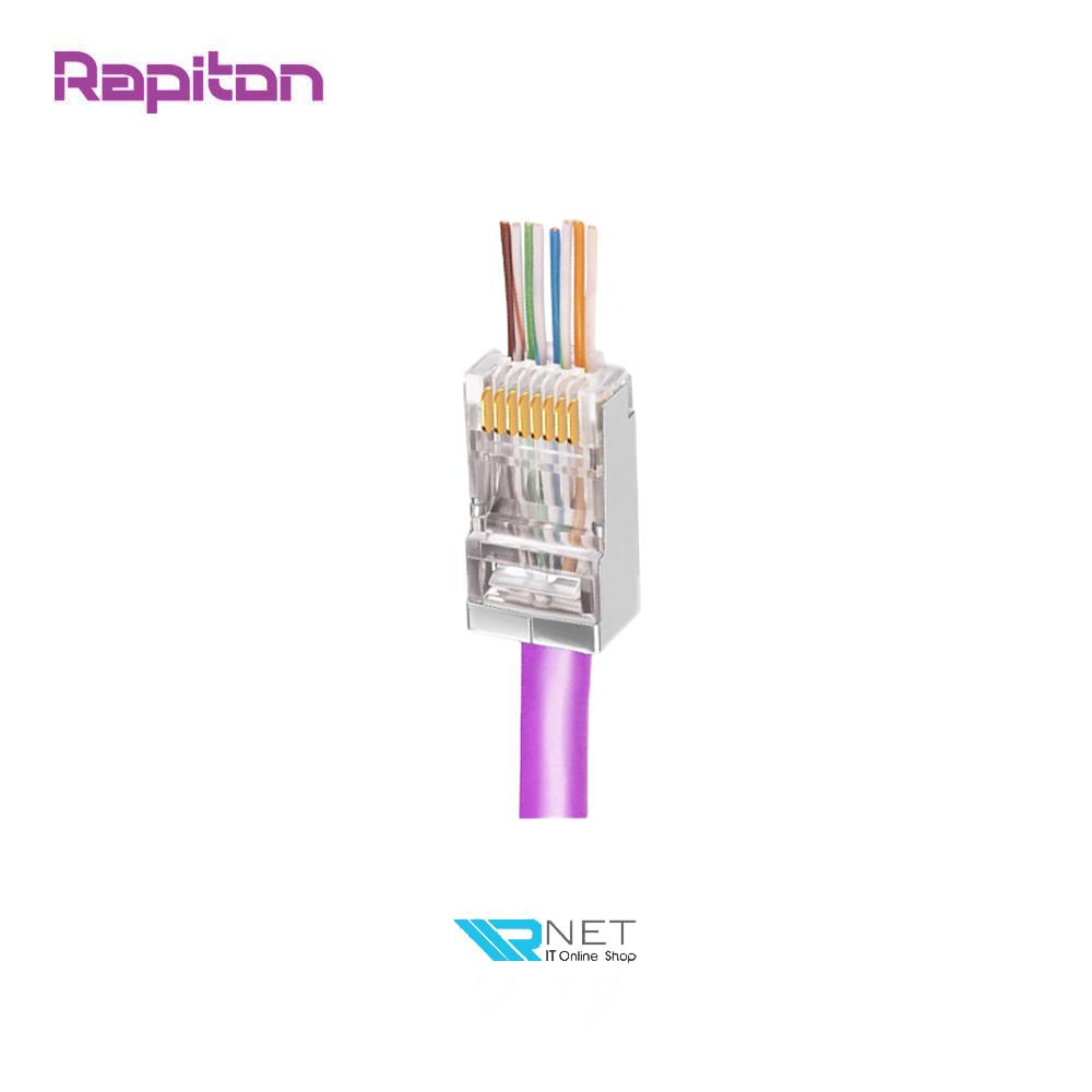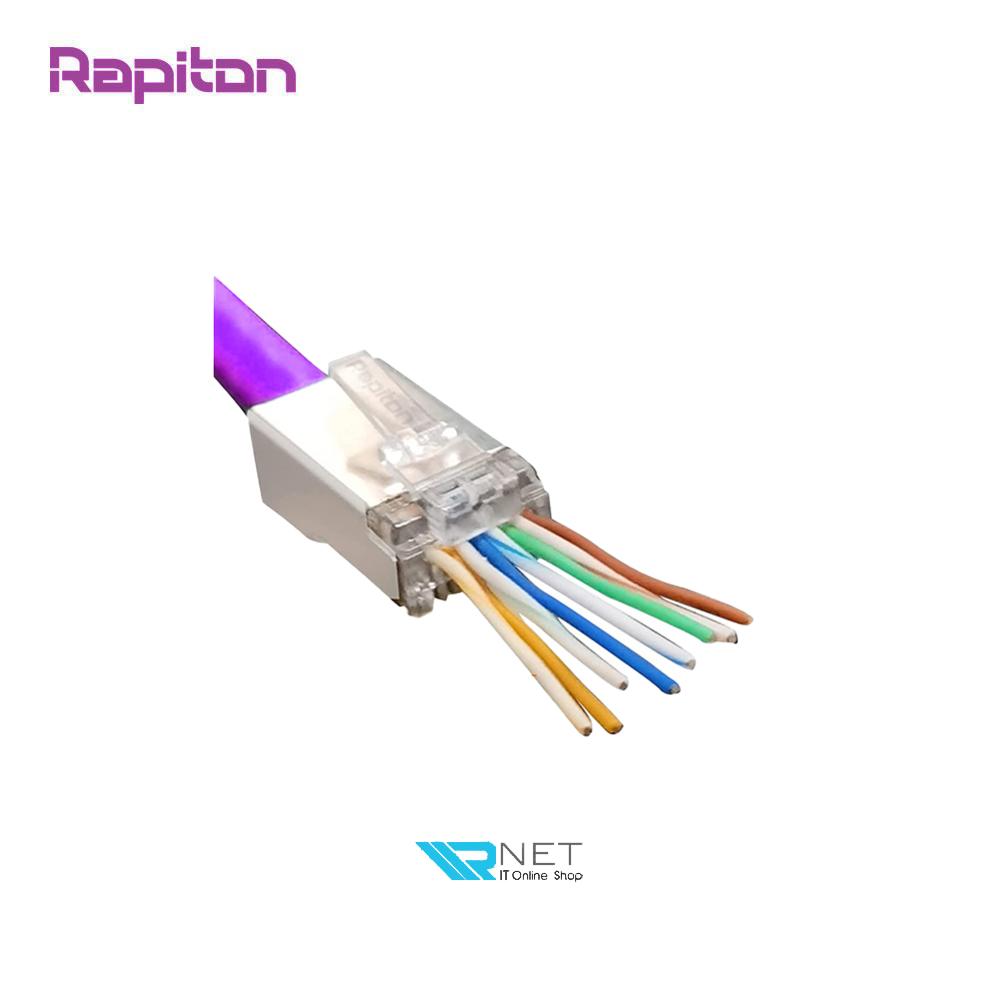سوکت رپیتون RP-MP2-6FP منطبق با استاندارد Cat6 است و به راحتی پانچ می شود. جنس بدنه پلی کربنات و پین های با ۵۰ میکرون روکش طلا ساخته شده است که برای بالا بردن کیفیت انتقال داده می باشد. از سوکت Pass-Through(Open-End) شبکه CAT6 رپیتون برای ایجاد کابلهای اختصاصی CAT6 شبکه استفاده میشود و اپراتور شبکه میتواند با استفاده از کابل شبکه، تعدادی از این سوکتها و یک آچار پانچ مخصوص رپیتون کابلهای مورد نظر خود را با سایزهای متفاوت درست کند. استفاده از سوکت های شبکه رپیتون با توجه به ساختار با کیفیت و استفاده از تکنولوژی Pass-Through(Open-End) صرفه جویی در وقت رنگ بندی ۵۶۸A , 586B و انداره استاندارد برش روکش کابل و تابش های رشته ها را فراهم می سازد.