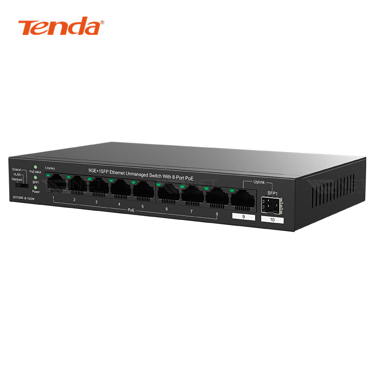 سوئیچ شبکه 9 پورت گیگابیت POE تندا مدل TEG1110PF-8-120W