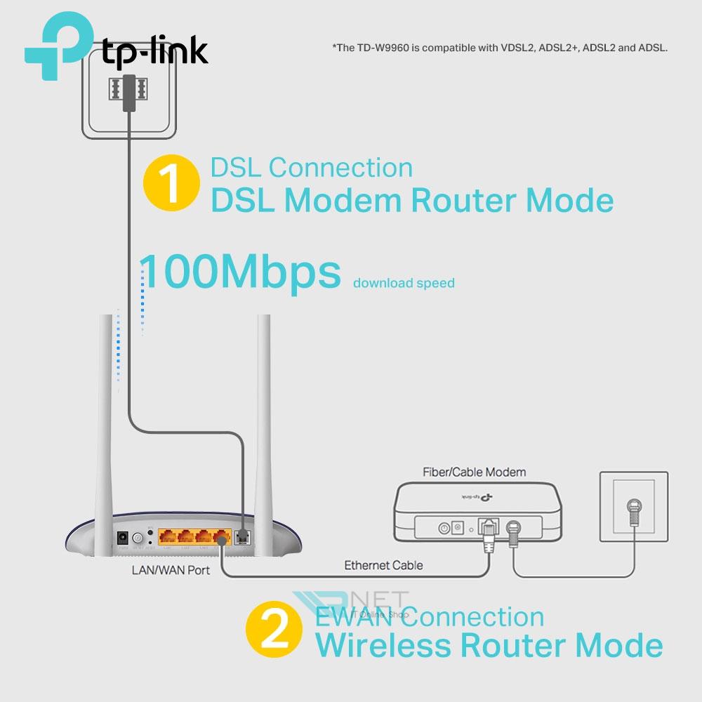 - مدل TD-W9960 تی پی لینک ، دارای 4 عدد پورت LAN با کارایی مشابه سوئیچ شبکه میباشد و هم زمان با 2 عدد آنتن وایرلس سرس N دیتا را در محیط پخش مینماید .