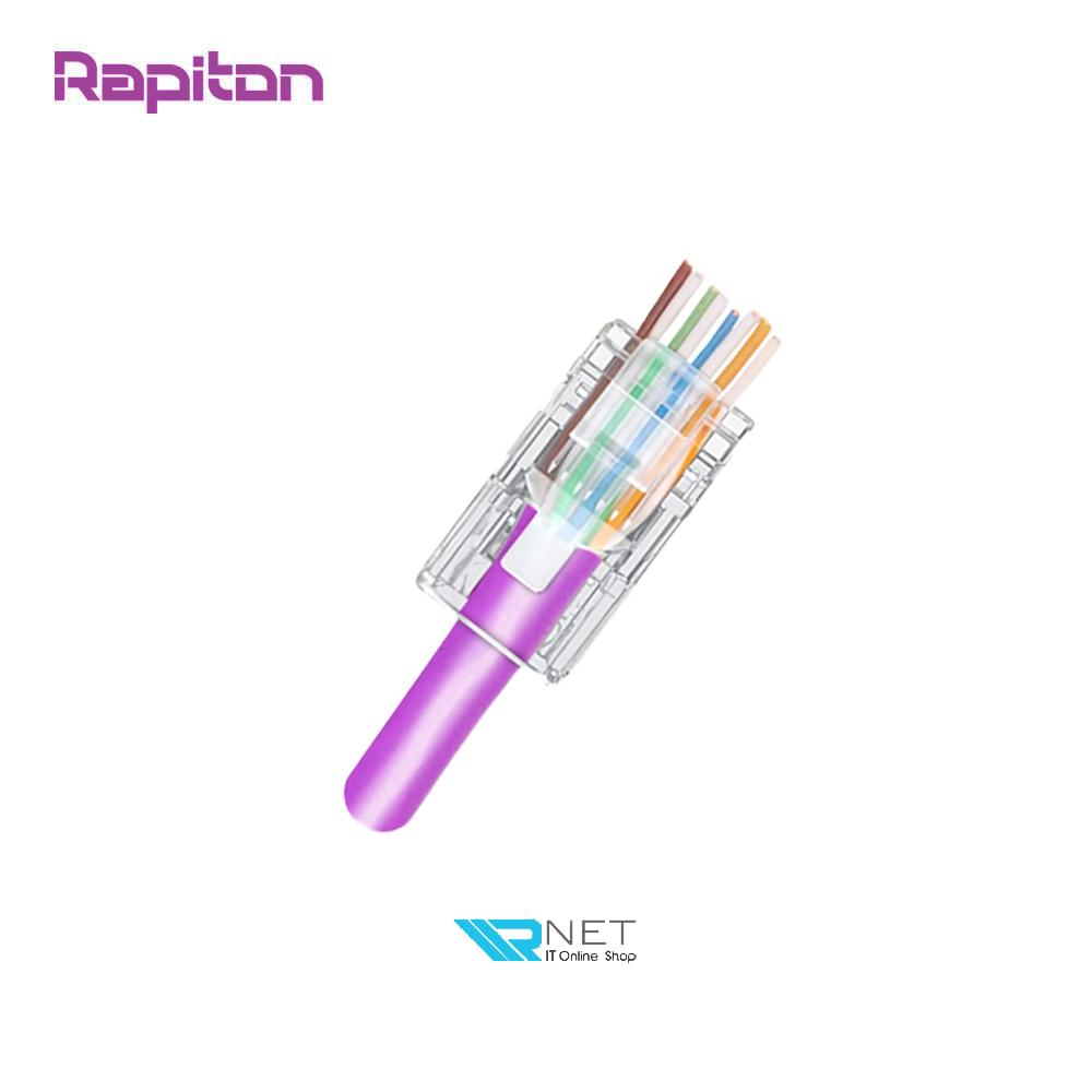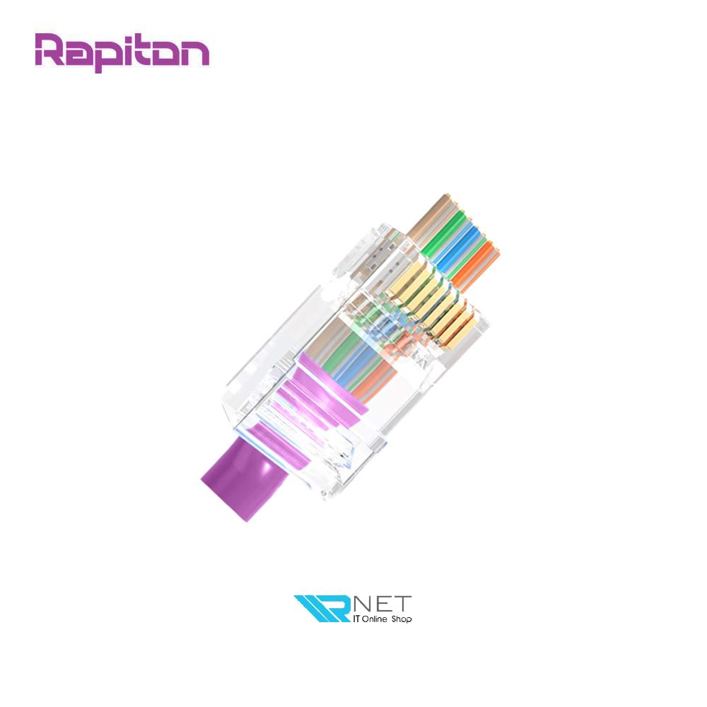سوکت رپیتون RP-MP1-6UP منطبق با استاندارد Cat6 است و به راحتی پانچ می شود. جنس بدنه پلی کربنات و پین های با ۵۰ میکرون روکش طلا ساخته شده است که برای بالا بردن کیفتن انتقال داده می باشد. از سوکت Pass-Through(Open-End) شبکه CAT6 رپیتون برای ایجاد کابلهای اختصاصی CAT6 شبکه استفاده میشود و اپراتور شبکه میتواند با استفاده از کابل شبکه، تعدادی از این سوکتها و یک آچار پانچ مخصوص رپیتون کابلهای مورد نظر خود را با سایزهای متفاوت درست کند. استفاده از سوکت های شبکه رپیتون با توجه به ساختار با کیفیت و استفاده از تکنولوژی Pass-Through(Open-End) صرفه جویی در وقت رنگ بندی ۵۶۸A , 586B و انداره استاندارد برش روکش کابل و تابش های رشته ها را فراهم می سازد.